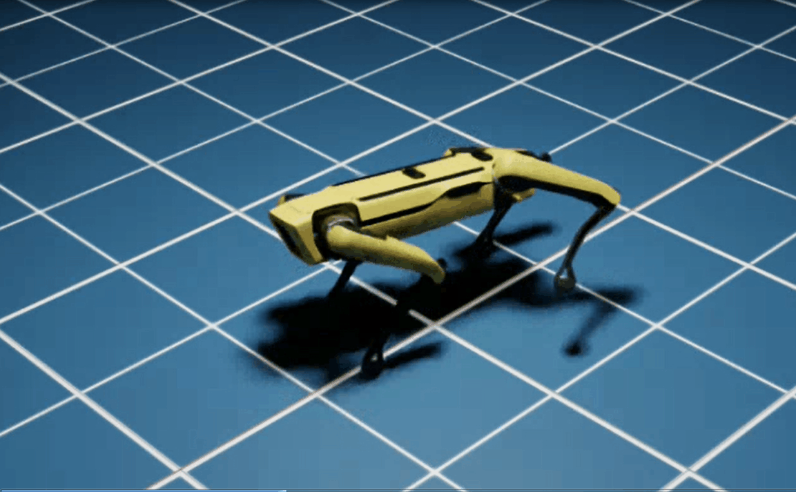 This example uses the Spot Flat Terrain Policy trained in Isaac Lab to control the quadruped’s locomotion.