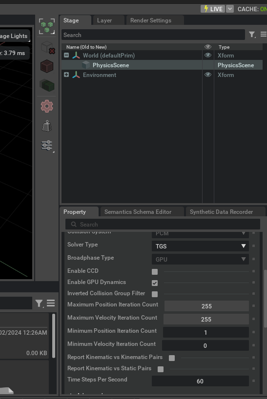 For more details on other parameters in the Physics Scene, refer to Omniverse Physics Developer Guide.