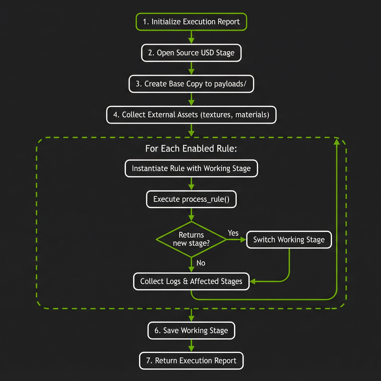 Return Report: Generate an execution report with per-rule logs and status.