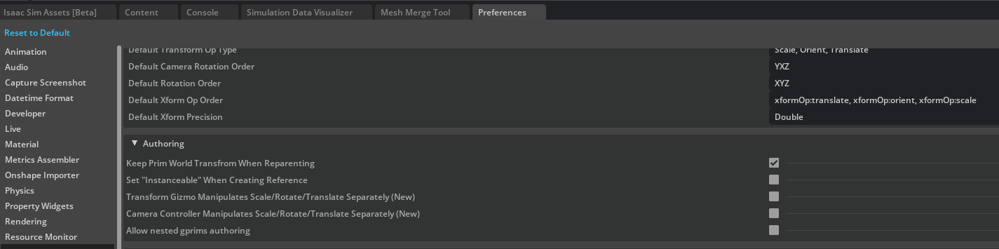 In Isaac Sim, go to Edit > Preferences to open the Preferences panel.