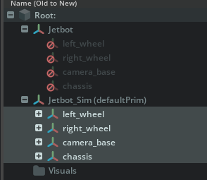 Jetbotand drag them ontoJetbot_Sim.Verify that instead of being deleted from Jetbot, they were instead deactivated.