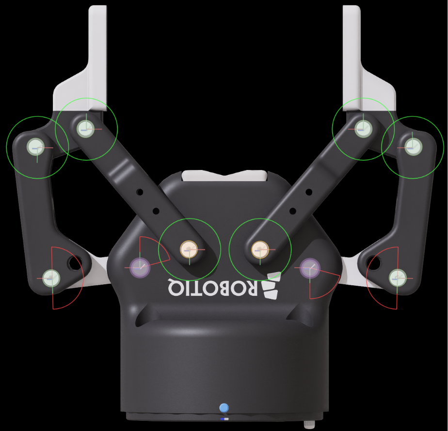 During your tests you may notice that the fingers are not colliding against each other. This is the default behavior when importing from Onshape. To disable that:
