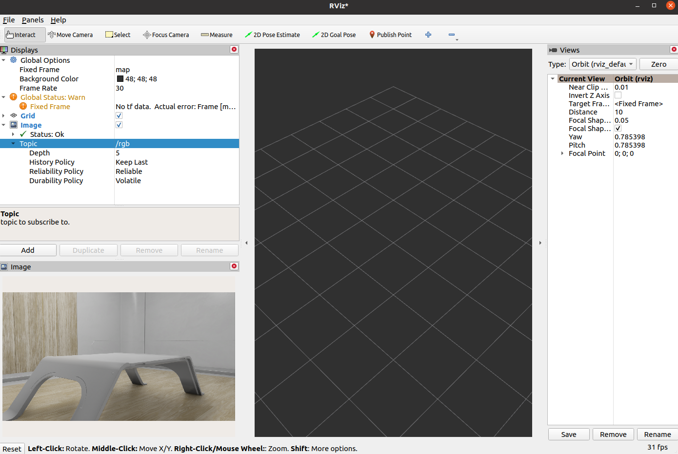 Visualize depth using the rqt_image_view method again: ros2 run rqt_image_view rqt_image_view /depth.