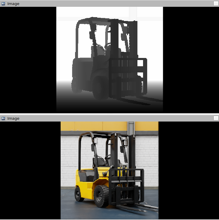 Verify that the depth image /camera_depth and RGB image /camera_rgb look like this: