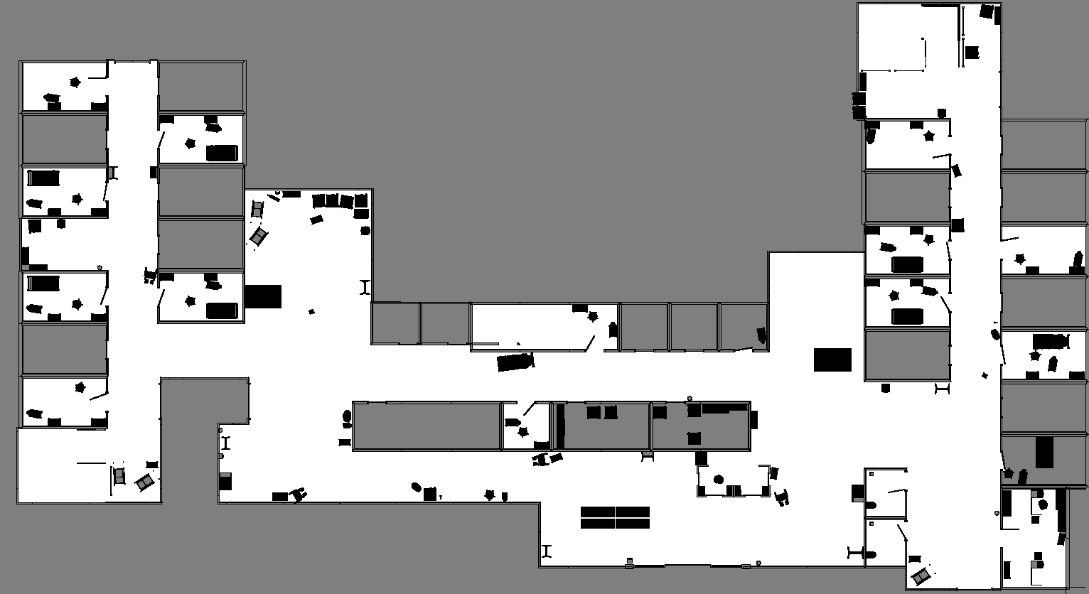 We generate the map of both the Hospital and Office environments using the Occupancy Map Generator extension within NVIDIA Isaac Sim.