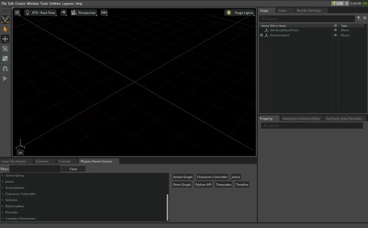 To create a Physics Scene, go to the top Menu Bar and click Create > Physics > Physics Scene. Verify that there is now a