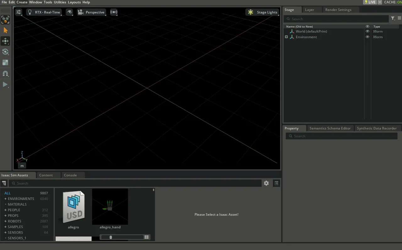 Press the Play button on the GUI. If set up correctly, verify that the Isaac Sim internal Console reads out the contact sensor’s force output.