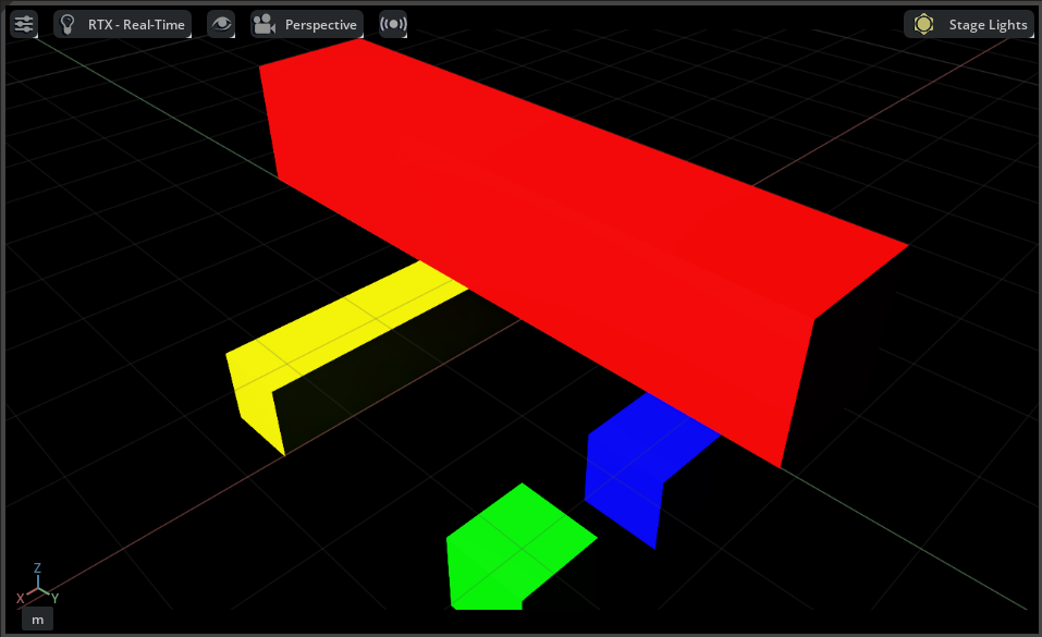 Observe each cube is colored differently in the visual spectrum. Select the Non-Visual Material ID Debug View in the viewport by selecting RTX - Real-Time > Debug View > Non-Visual Material ID. The following image
