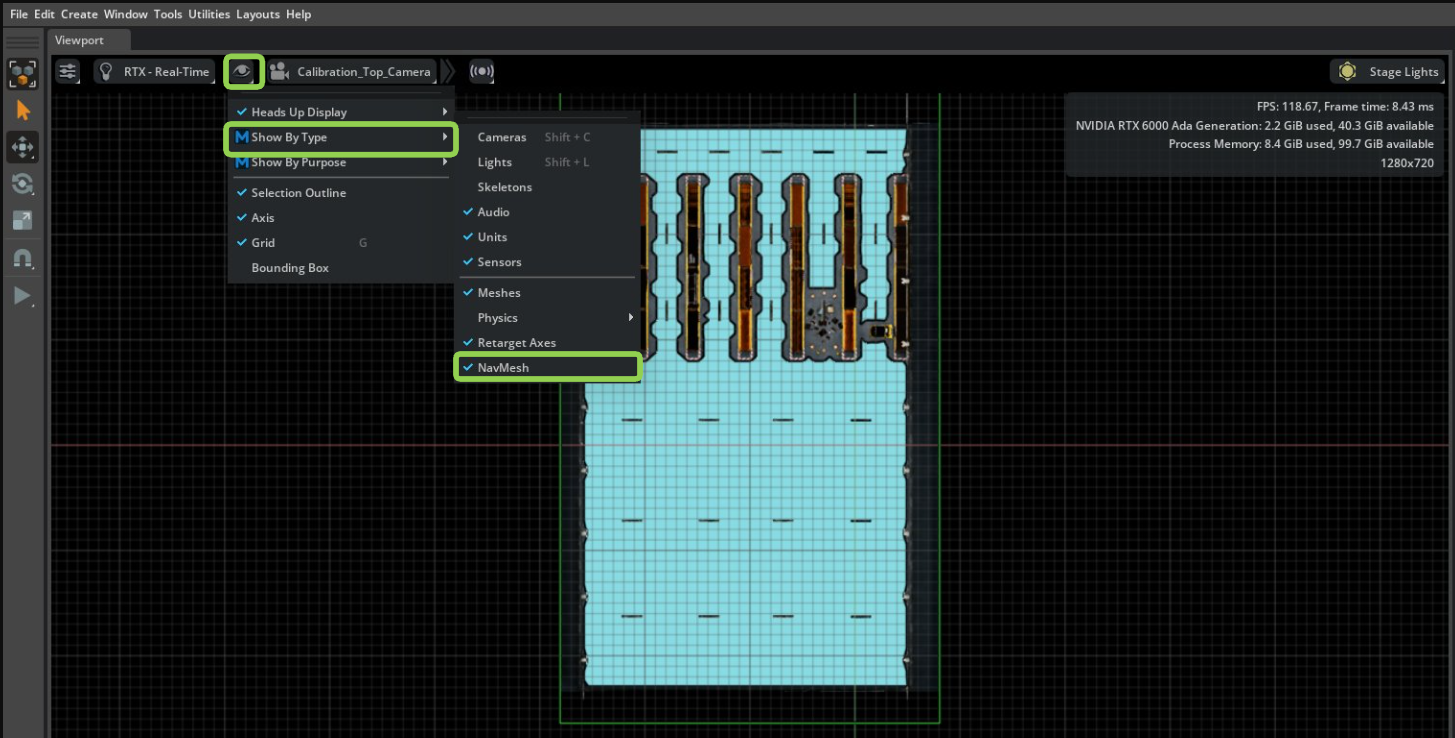 Visualize Navmesh by clicking on Visibility Menu (eye icon on viewport) > Show By Type > Navmesh.