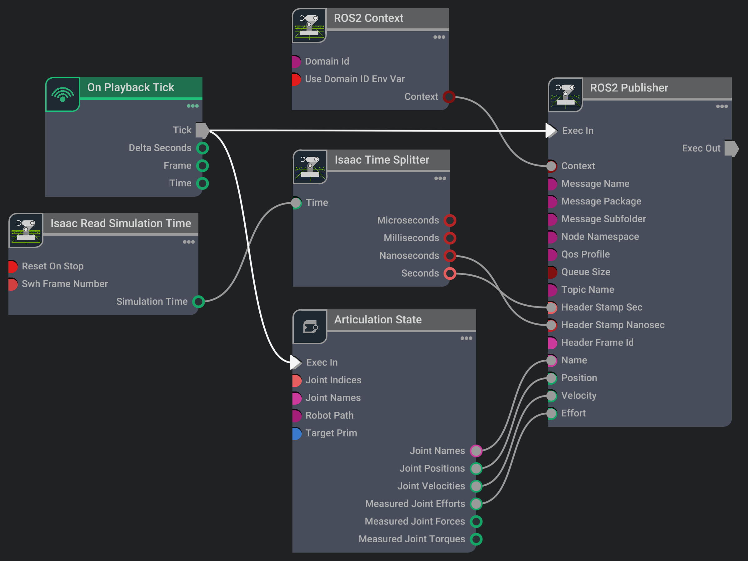 std_msgs/Header headermessage timestamp (expressed as seconds and nanoseconds).Articulation State node to get the robot articulation states (joint positions, velocities and efforts) to fill the
