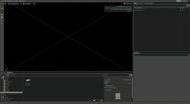 Load the warehouse USD file in Isaac Sim/Environments/Simple_Warehouse/warehouse_multiple_shelves.usd.